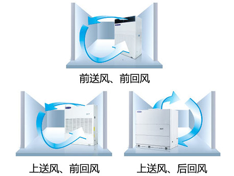 滿足前送風(fēng)-前回風(fēng)、上送風(fēng)-前回風(fēng)、上送風(fēng)-后回風(fēng)等多種方式,適用不同場(chǎng)合的要求,工程使用性強(qiáng)。