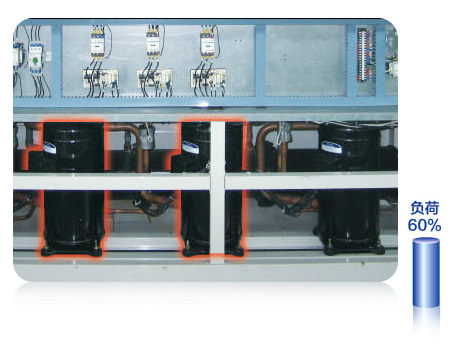 壓縮機(jī)分時(shí)啟動(dòng),大大降低啟動(dòng)電流,減小電網(wǎng)壓降帶來的影響;負(fù)荷較小時(shí),只開啟一個(gè)壓縮機(jī),能耗降低。