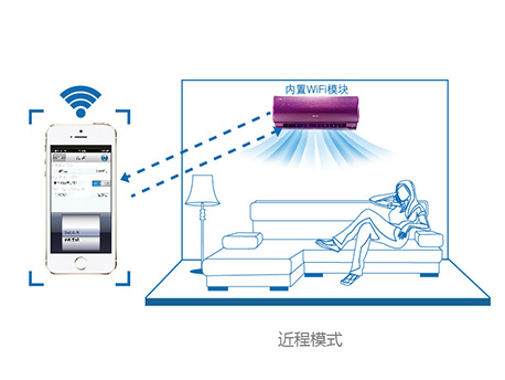 近程模式 無(wú)需家庭無(wú)線(xiàn)路由器,智能終端可直接連接空調(diào)進(jìn)行遙控,適用于家庭近距離遙控。 |