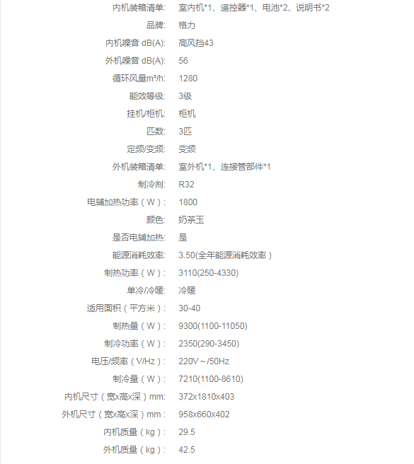 格力分體空調