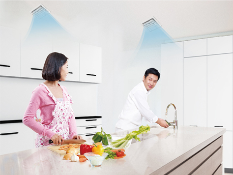 情侶送風:廚享特設(shè)雙出風口,開啟時,兩個風口從不同位置出風,增加夫妻搭檔烹飪的樂趣。 |