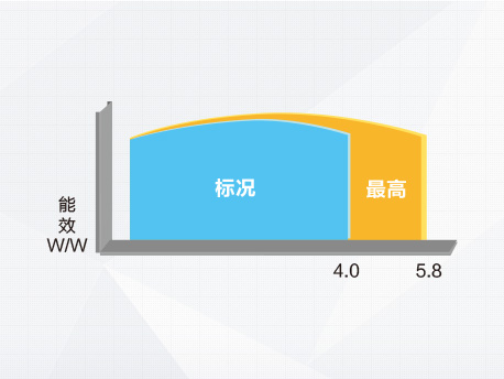采用專業(yè)的水路設(shè)計(jì),全系列平均能效比高達(dá)4.0(可高達(dá)5.8)。