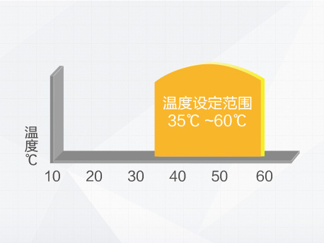 出水溫度35 ~ 60℃靈活可設(shè),適用各種熱水需求的場(chǎng)所。